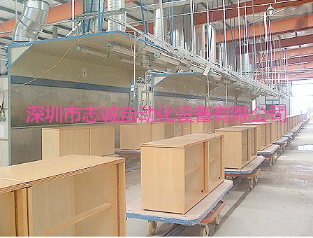 流程:上件區 → 手動除塵 → 靜電除塵 → 手動噴涂 → 烘干區 → UV漆固化區 → 冷卻區 → 絲印區 → 品檢區 → 收件區