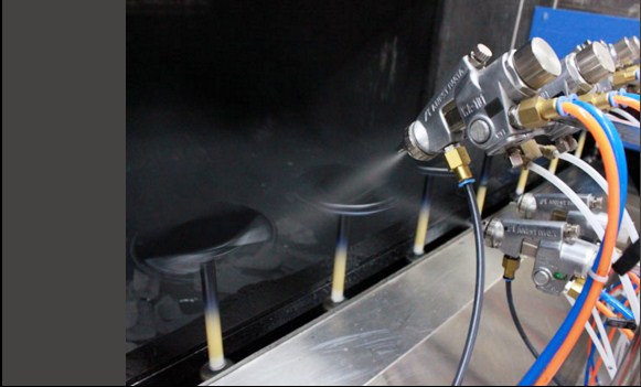 噴涂速度快,噴涂均勻,依工件變化,自動調整噴槍,高低、前后、角度位置,可配合打版機模擬程序,減少停線調槍打樣時間、噴槍條件數位化記憶,減少對師傅的依賴,生產管理容易。